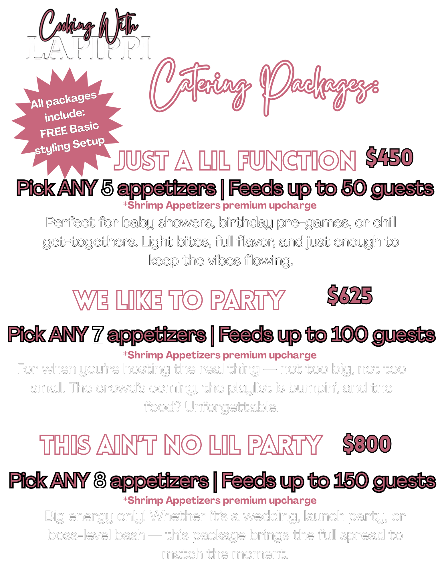 Interested in booking Cooking With Lapippi for your next event or special occasion? Fill out some info and we will be in touch shortly! We can't wait to hear from you!